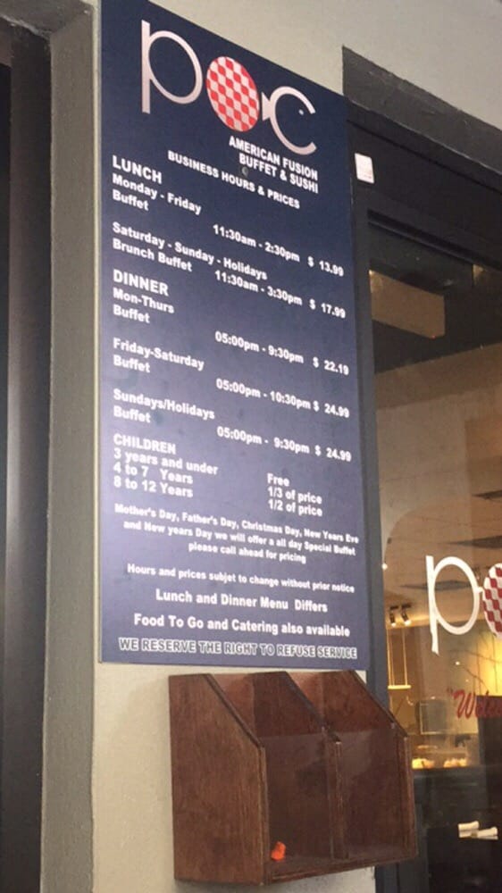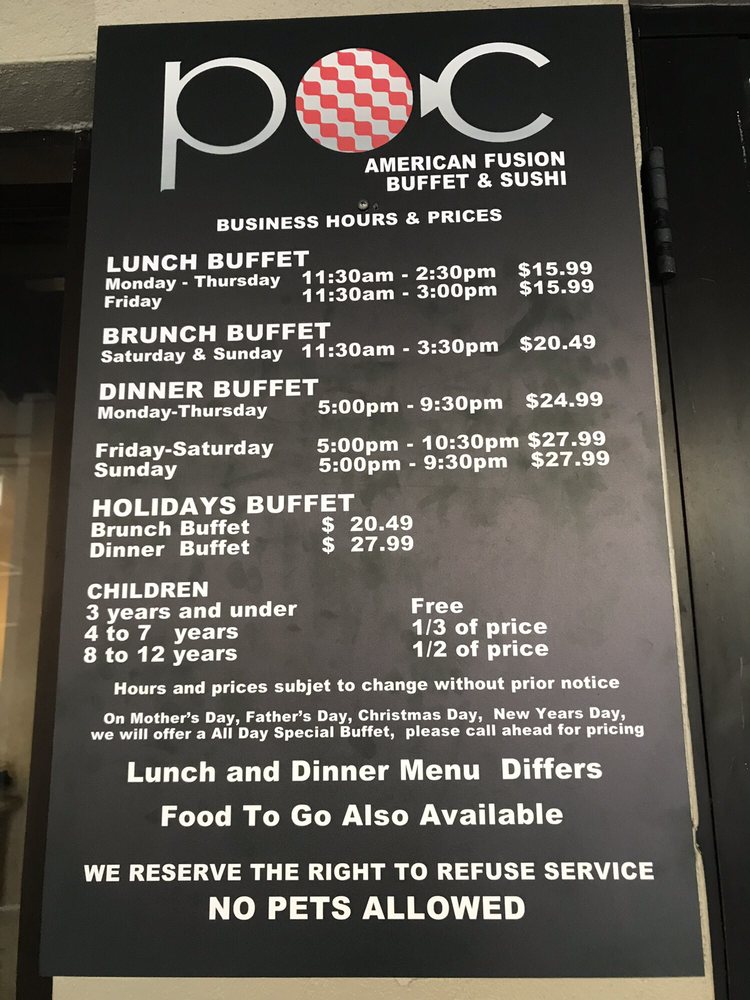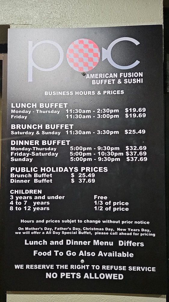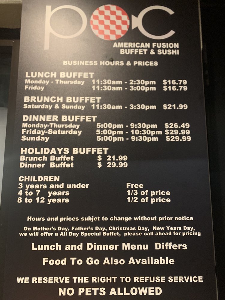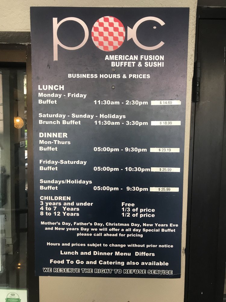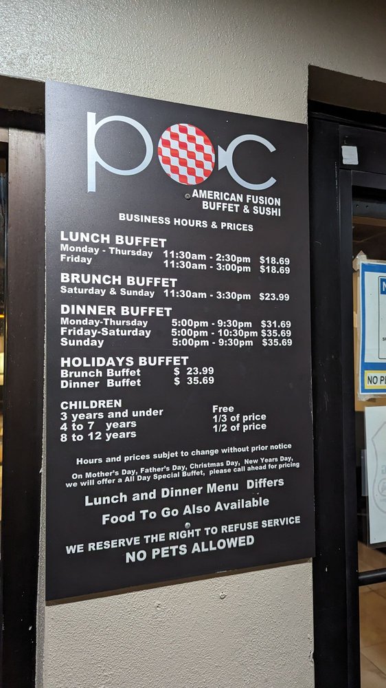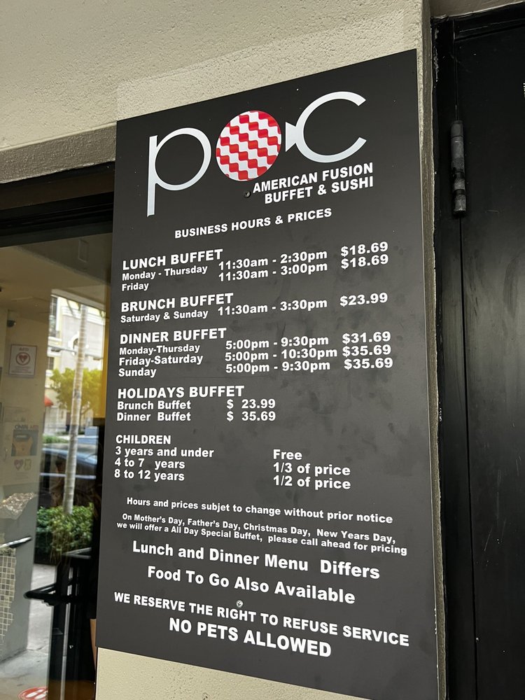 POC Fusion Buffet is a top-notch dining destination in Coral Gables, FL, offering a unique blend of New American cuisine, buffet options, and sushi bars. With a wide array of appetizers like Pork Gyoza and Shrimp Tempura, as well as a variety of beverages including alcoholic options, POC Fusion Buffet caters to a diverse range of tastes. Customers have lauded the quality of food, with standout reviews highlighting the excellent service and pleasant ambiance. The fusion dishes are described as fresh and flavorful, making for a satisfying dining experience. POC Fusion Buffet is a must-visit for sushi lovers and those looking for a laid-back meal with a touch of sophistication. The restaurant's accommodating staff and variety of options make it a standout choice for brunch, lunch, or dinner outings.
