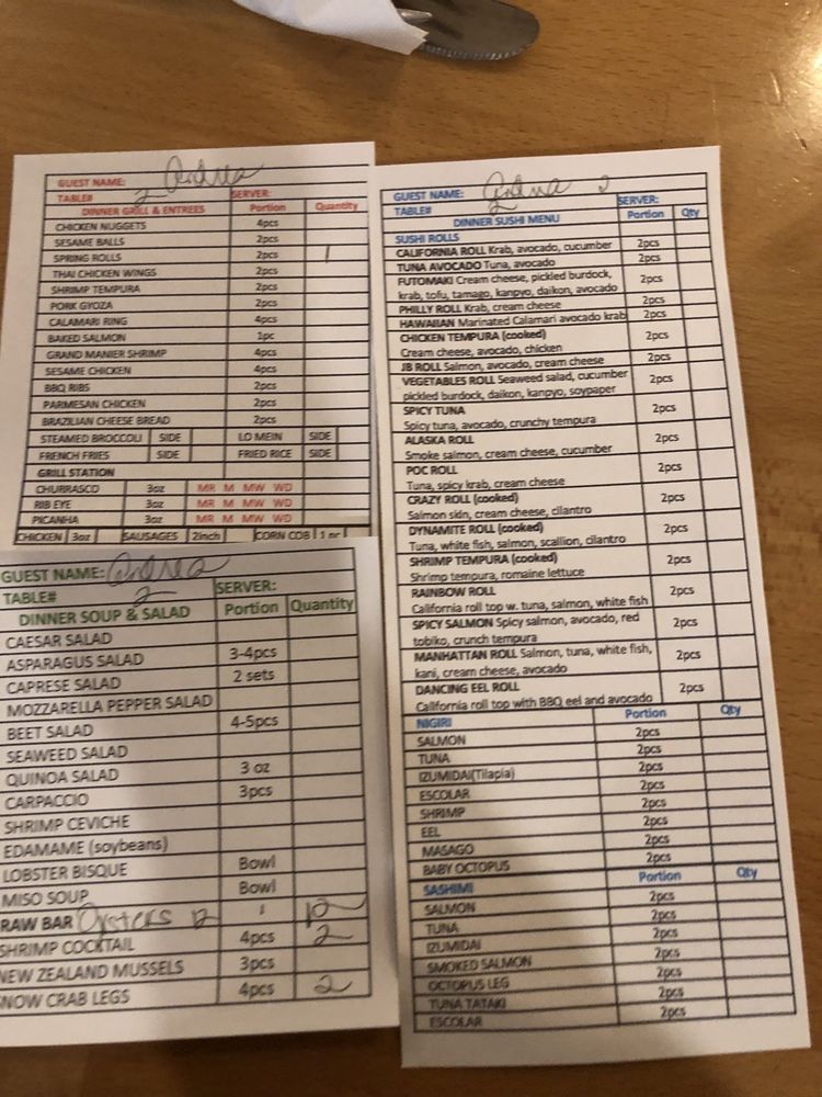 20 pieces assorted sushi, 20 pieces assorted sashimi, 1 rainbow roll, 1 jb tempura roll, 1 tuna roll, 1 California roll.