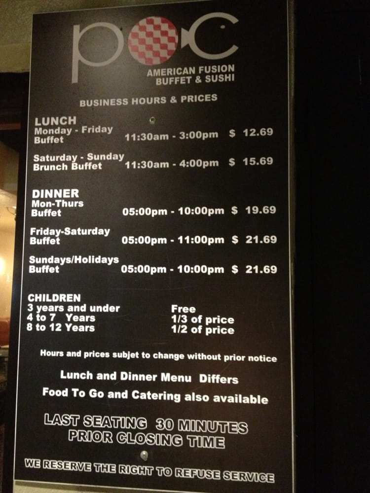 POC Fusion Buffet Menu
